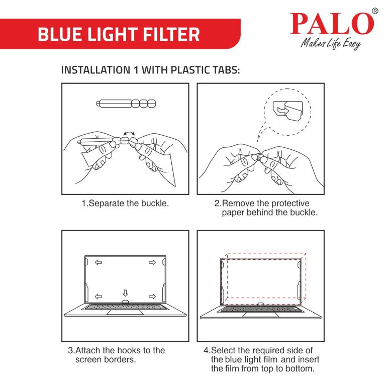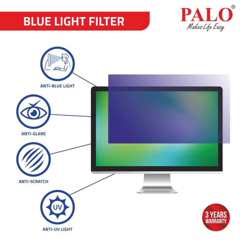 PALO Blue Light Filter for Laptop/Monitors reduces eye-strain by effectively preventing/blocking harmful blue light and UV light from harming your eyes. It is a recommended product for people exposed to longer screen times . The filter prevents glare reflection on the screen, scratch, dust, fingerprint and protects your screen from external damages.