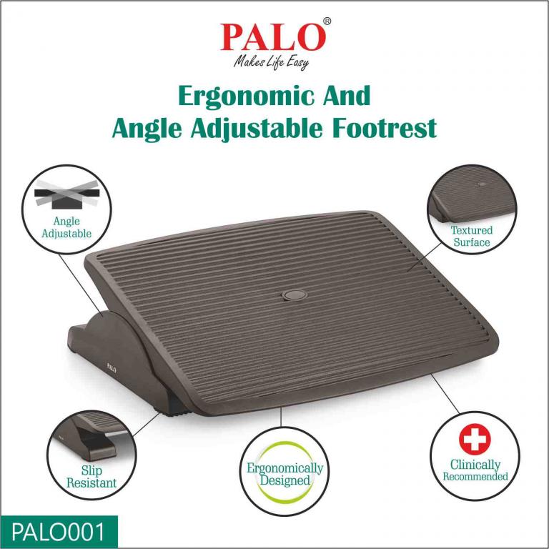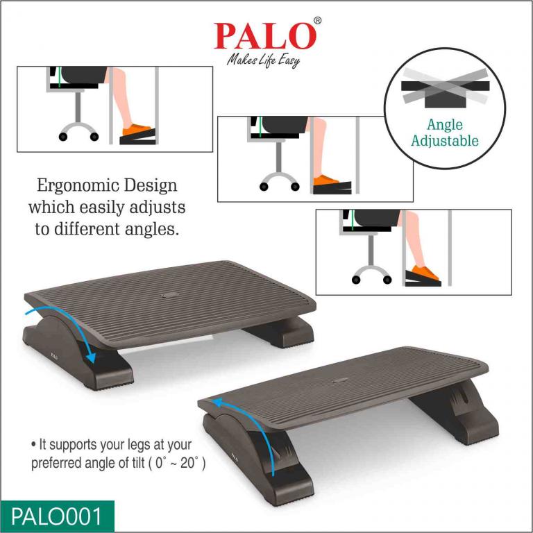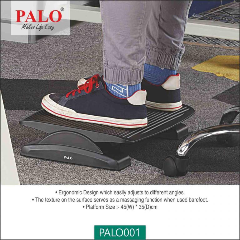 PALO001 ergonomic footrest promotes a stress free posture allowing you to adjust the angle of the footrest while resting your feet on it. The texture on the surface serves as a massaging function that can ease leg problem and relieve lower backpain. It is made of high impact polystyrene with 45(L) X 35(W) cm size of platform. Ideal product to place under the table at office or home.