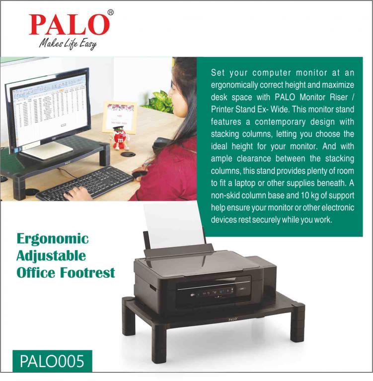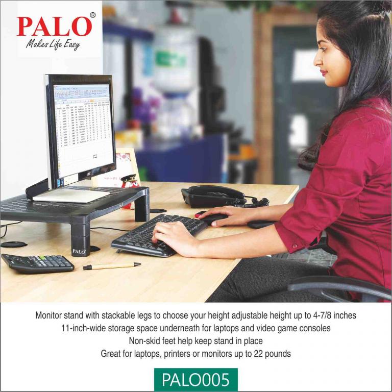 Set your computer monitor at an ergonomically correct height and maximize desk space with PALO005 Monitor Riser / Printer Stand Ex- Wide. This monitor stand features a contemporary design with stacking columns, letting you choose the ideal height for your monitor. And with ample clearance between the stacking columns, this stand provides plenty of room to fit a laptop or other supplies beneath. A non-skid column base and 10 kg of support help ensure your monitor or other electronic devices rest securely while you work.