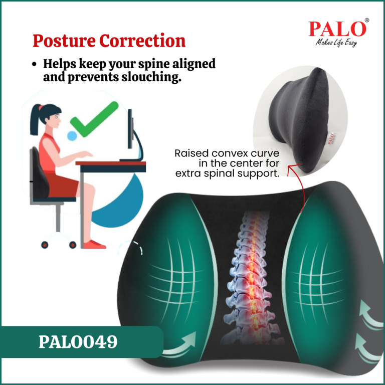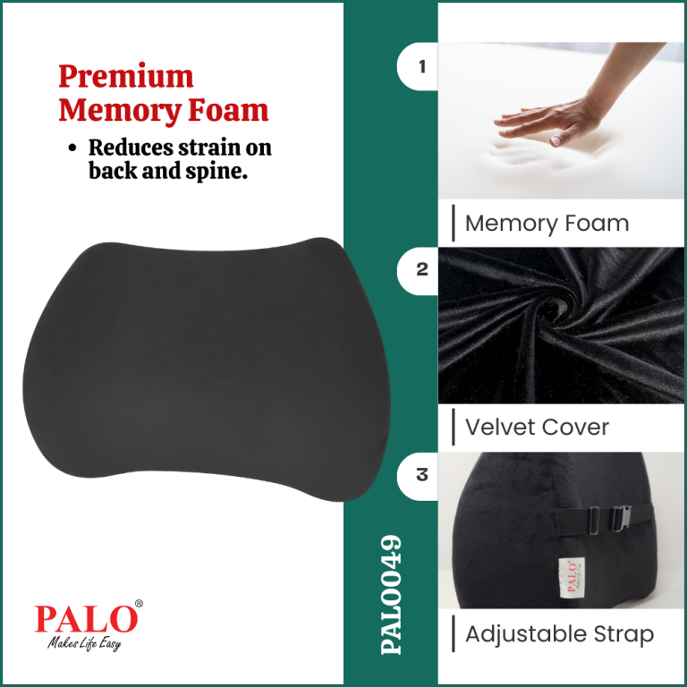 PALO Memory Foam Lumbar Back Rest is an orthopedic and ergonomic lumbocare cushion scientifically designed to give firm support to lumbar part of the spine. Get the best in back support and comfort with PALO memory foam back cushion. Good health involves a lot of things, and one of those is a strong back. Proper supports for your back’s natural curves goes a long way toward allowing you to get back to doing the things you do. Whether you’re taking a road trip, travelling, pulling an all-nighter on a paper, or trying to meet a deadline at work, our cushion provides your back the support, so you can focus on what matters most to you.