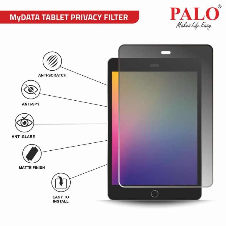 PALO tablet privacy filter makes it difficult or impossible for someone to see the screen without being directly in front of it thereby prevent wandering eyes from absorbing confidential information. Its anti-glare feature reduces the strain on eye thereby helping you work longer.